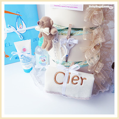 Pues si, en Baby Regal hemos hecho una *Tarta de pañales*! Como ya os habréis dado cuenta, la presentación es impresionante. Se trata de 3 pisos de tarta rellenos de pañales y decorados con unos preciosos lazos. Esta tarta nos la han encargado en color beige, pero por supuesto también la podemos elaborar en azul o en rosa, siempre al gusto del cliente.